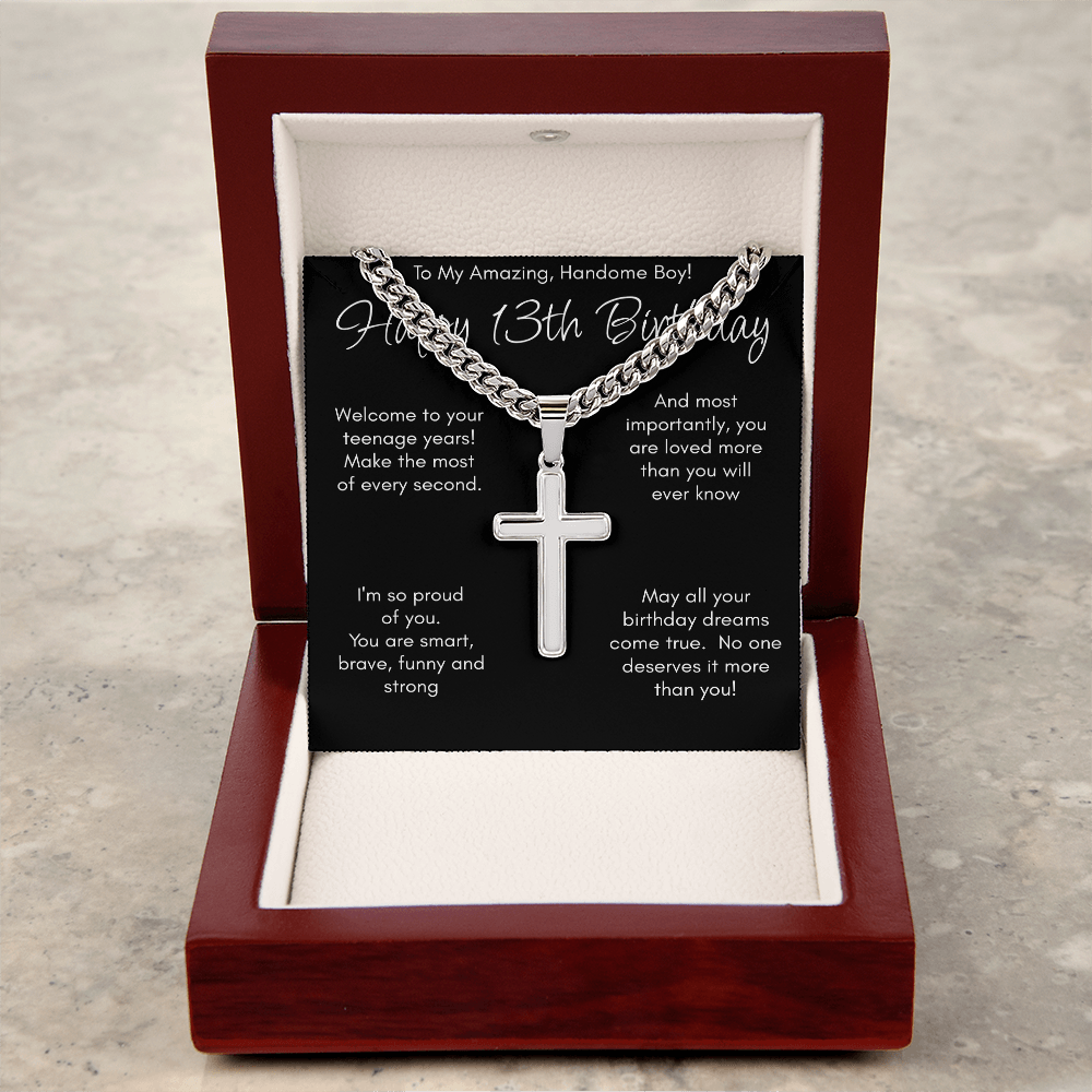 This cool necklace is a special gift, celebrating his momentous 13th birthday. Crafted to be a lasting and meaningful keepsake, it symbolizes this exciting step into his teenage years and all the incredible adventures ahead.