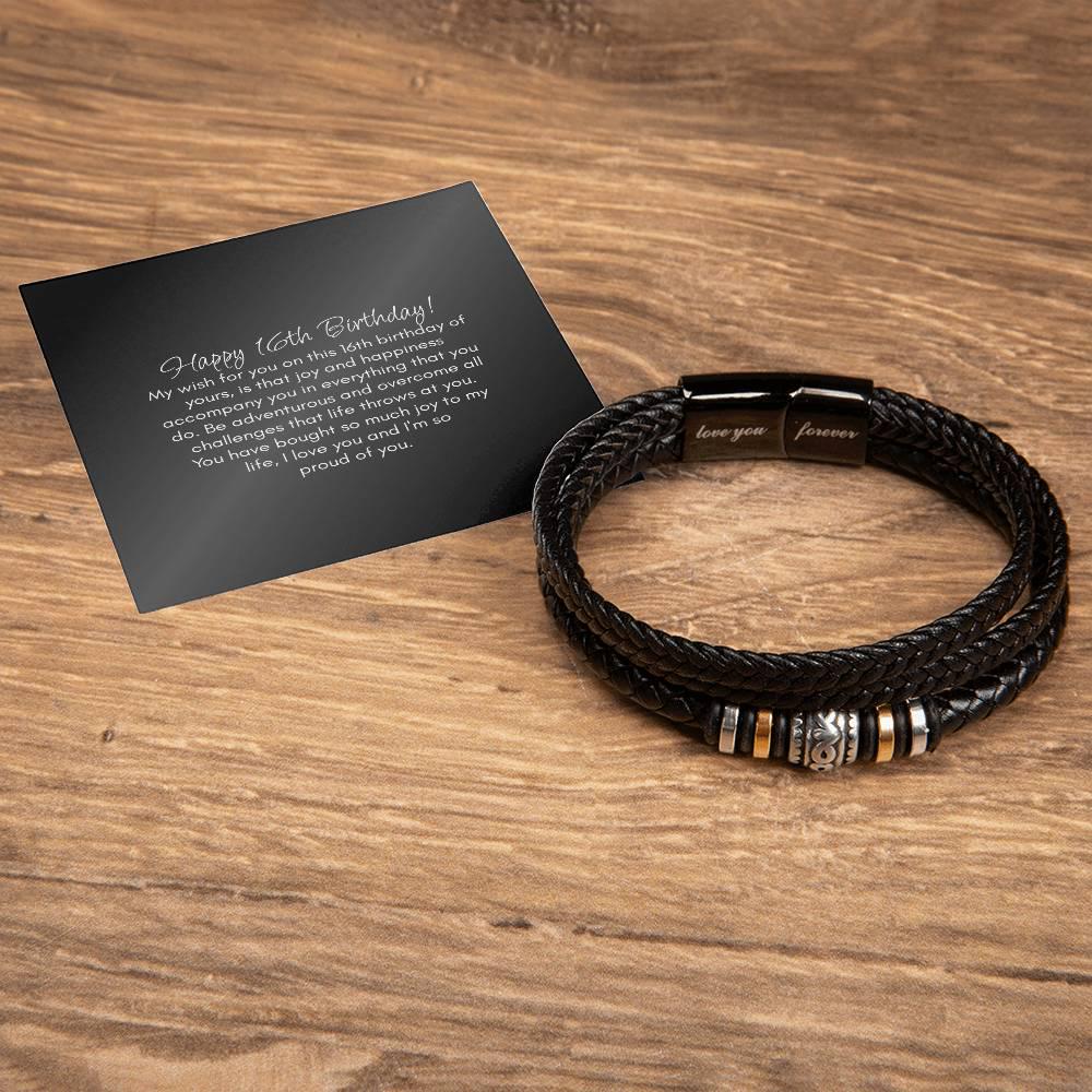 Celebrate his 16th in style. This sleek and meaningful men’s bracelet makes the perfect 16th birthday gift for a son, nephew, grandson, godson, or any special young man. A symbol of strength, confidence, and the exciting journey ahead — it’s a keepsake he’ll be proud to wear as he steps into this new chapter.