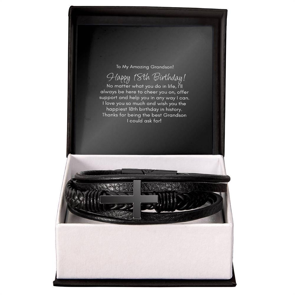 This stylish bracelet is a special gift, celebrating your grandson's momentous 18th birthday. Crafted to be a lasting and meaningful keepsake, it symbolizes his exciting journey into adulthood and all the incredible adventures that lie ahead.