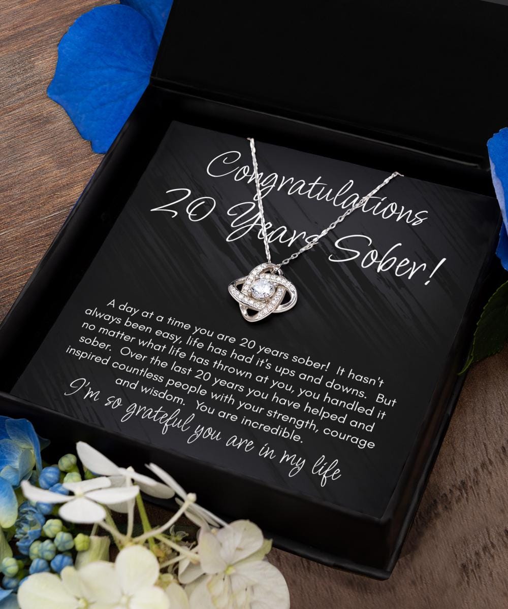 A powerful symbol of strength, resilience, and 20 incredible years of sobriety. This elegant necklace is a meaningful way to honor the journey, celebrate the milestones, and recognize the courage it takes to keep moving forward—one day at a time.