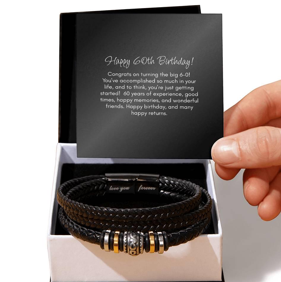 This handsome bracelet is a distinguished gift, celebrating a momentous 60th birthday. Crafted to be both stylish and enduring, it's a perfect symbol of six decades of life, wisdom, and cherished memories.