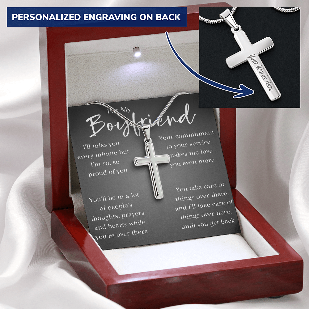 A meaningful gift for a boyfriend heading into deployment — this cross pendant chain symbolizes faith, strength, and the love that connects you. A powerful reminder that no matter the miles between you, he’s always in your heart.