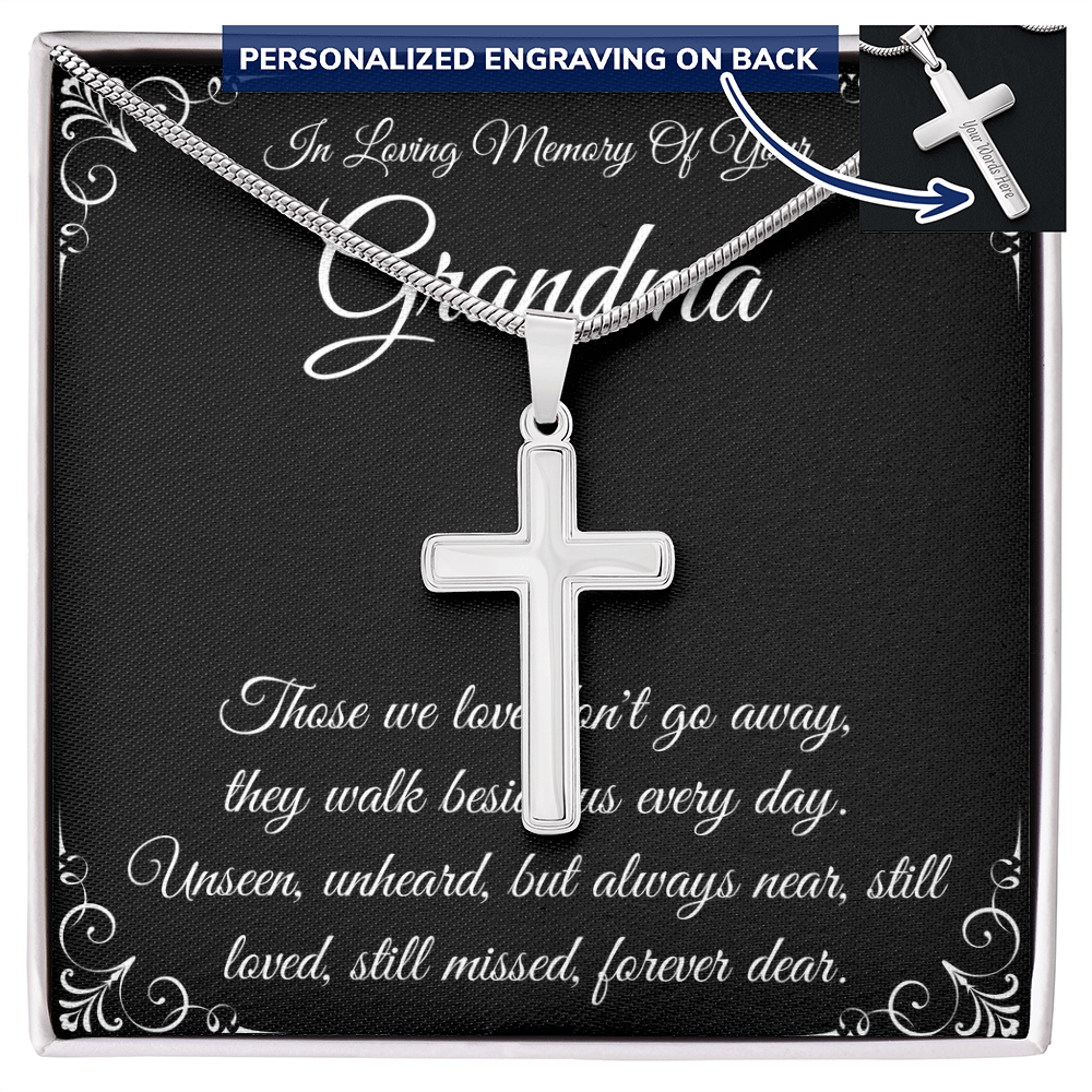 Honor the memory of a beloved grandma with this engravable cross necklace — a timeless piece that keeps her spirit close to your heart. Thoughtfully designed to symbolize faith, love, and remembrance, it can be personalized with a name, date, or special message, making it a beautiful tribute to a life well lived and a love never forgotten