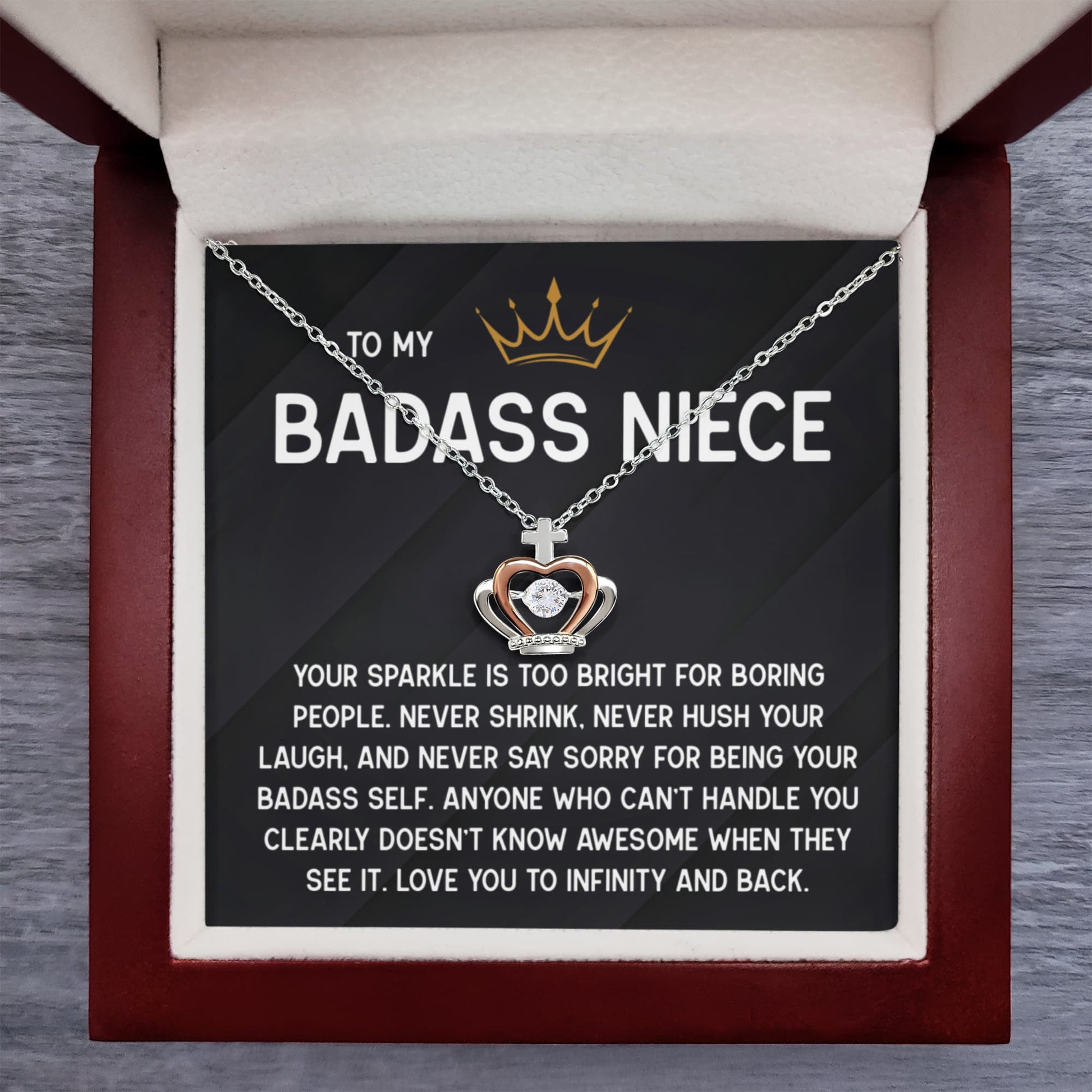 Perfect for the niece who keeps you laughing and life interesting. This necklace says: stay bold, stay bright, and keep that crown on straight. She’s got this — and you’ve always got her back.