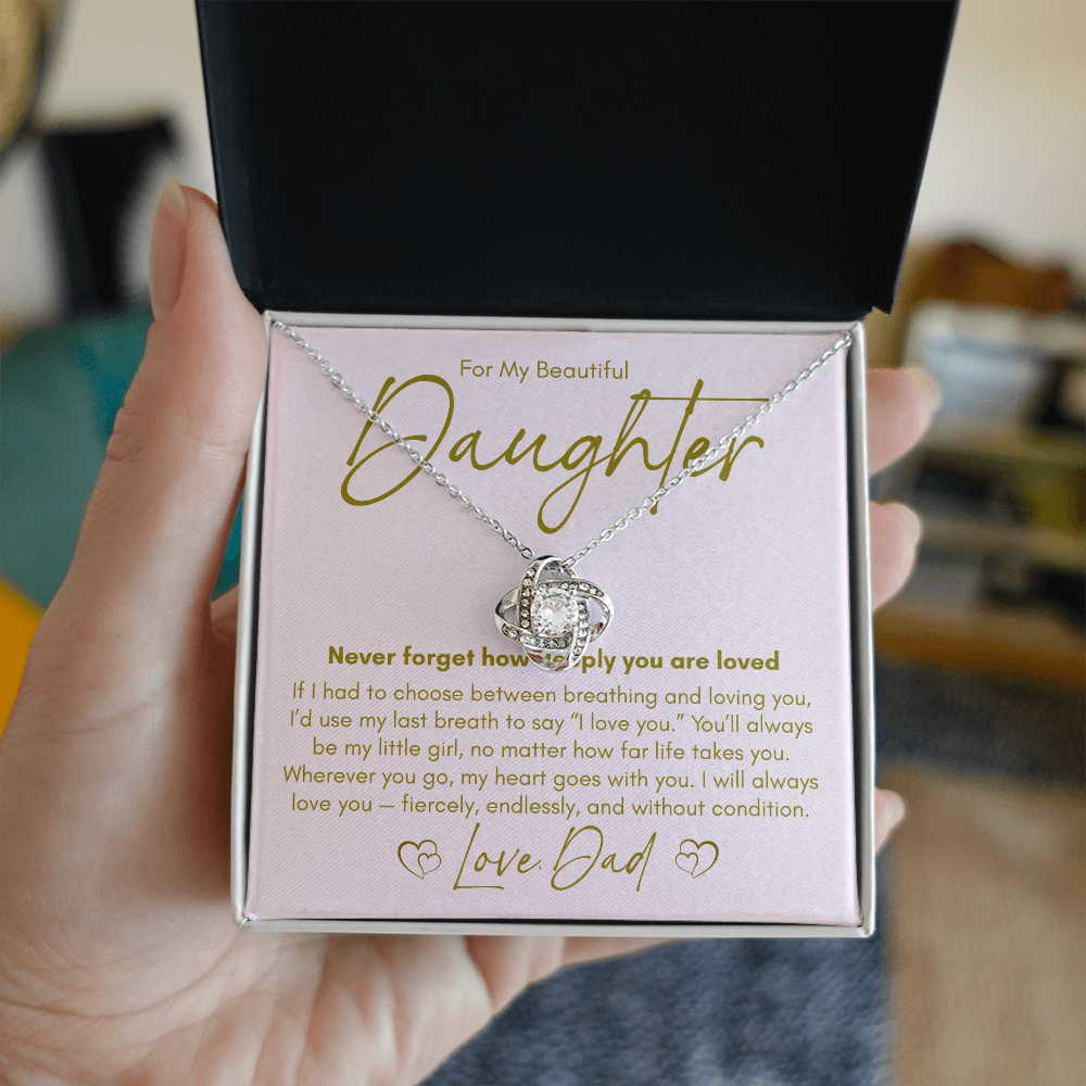 Celebrate the unbreakable bond between a father and his daughter with this exquisite necklace. More than just a beautiful accessory, it's a heartfelt symbol of his enduring love, pride, and the special connection you share. Crafted to be cherished for years to come, this necklace is the perfect way for a dad to say "I love you" to his precious daughter.