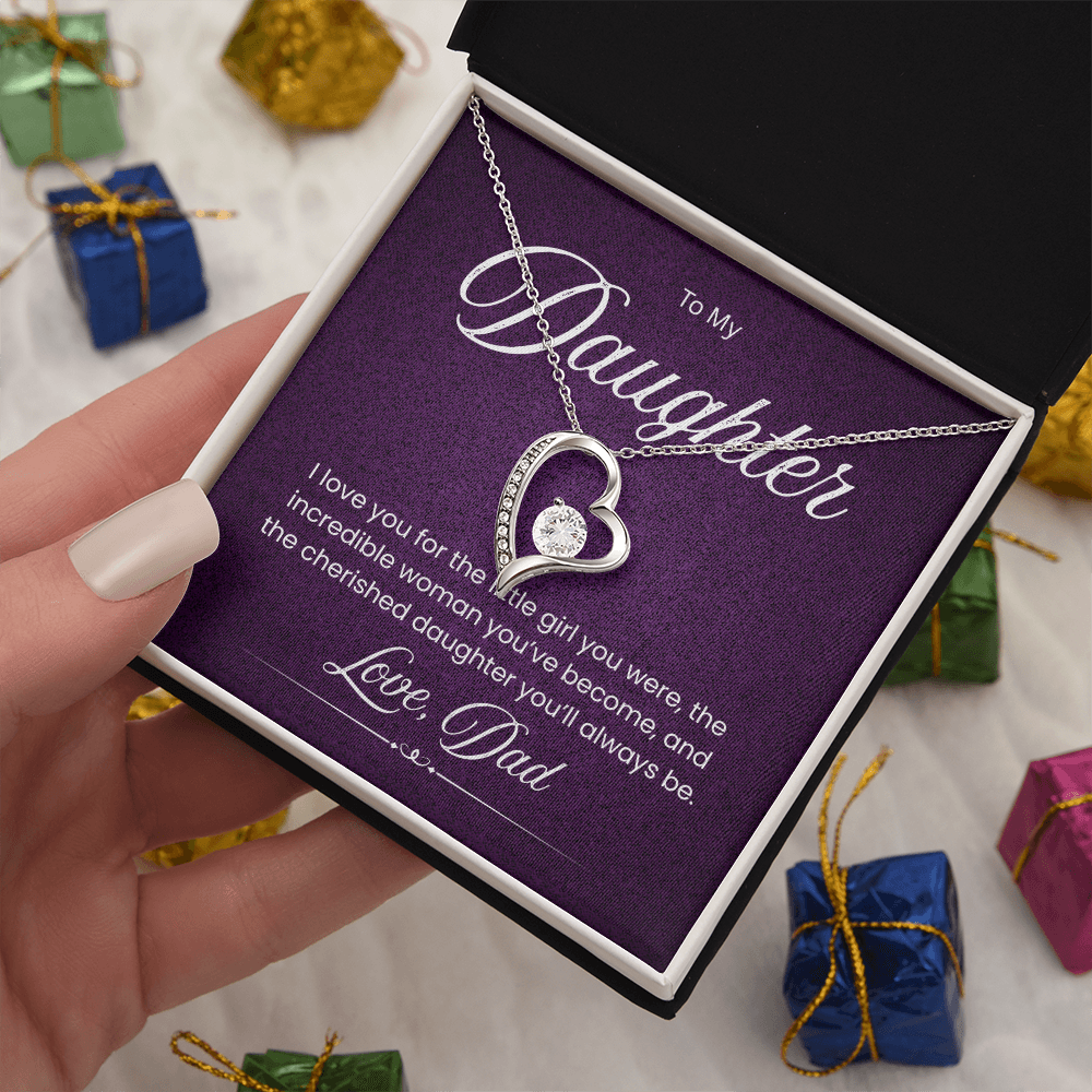 Celebrate the unbreakable bond between a father and his daughter with this exquisite necklace. More than just a beautiful accessory, it's a heartfelt symbol of his enduring love, pride, and the special connection you share. Crafted to be cherished for years to come, this necklace is the perfect way for a dad to say "I love you" to his precious daughter.