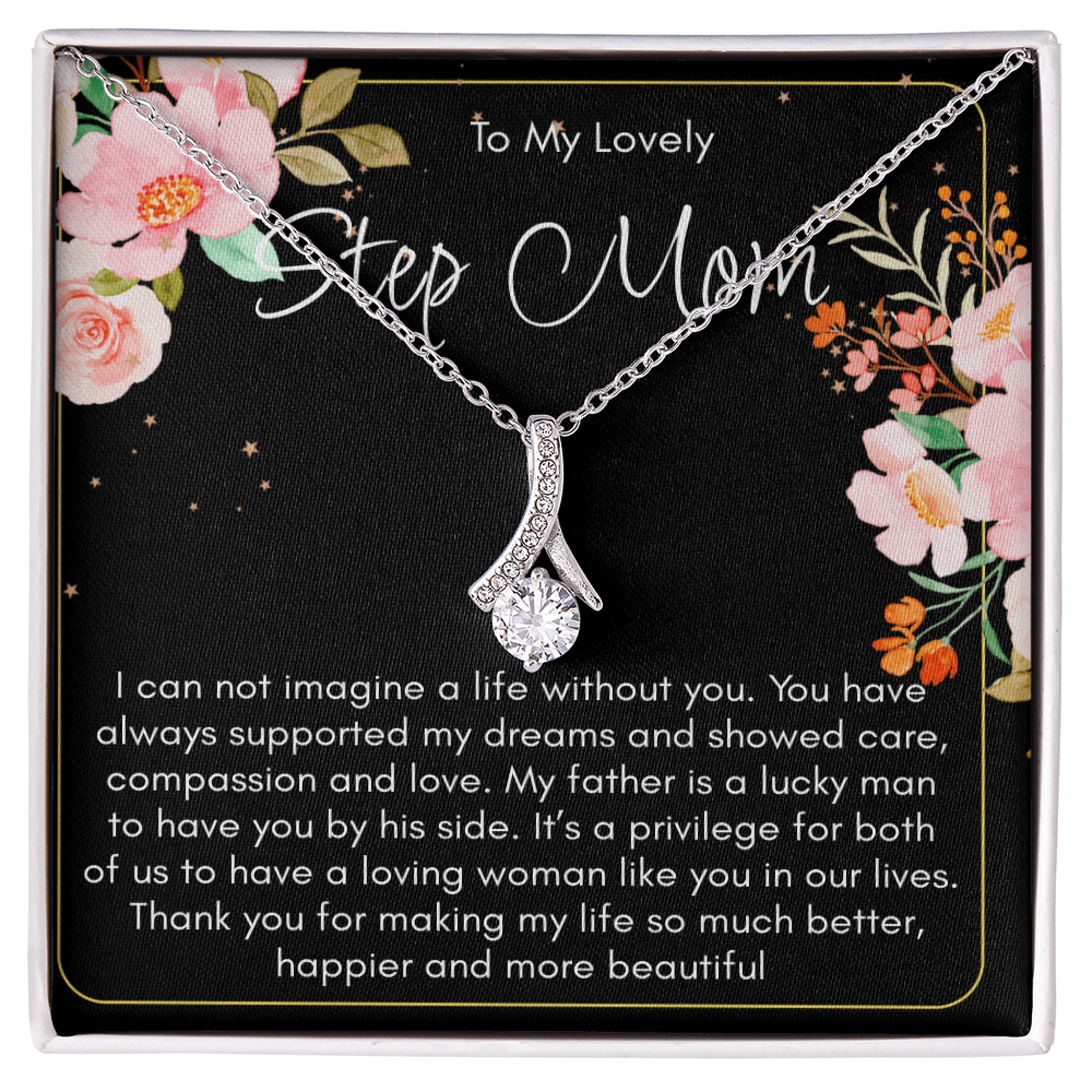 This elegant necklace is a beautiful token of appreciation for your incredible stepmom. It's a radiant symbol of the special bond you share, celebrating the love, support, and warmth she brings to your life.