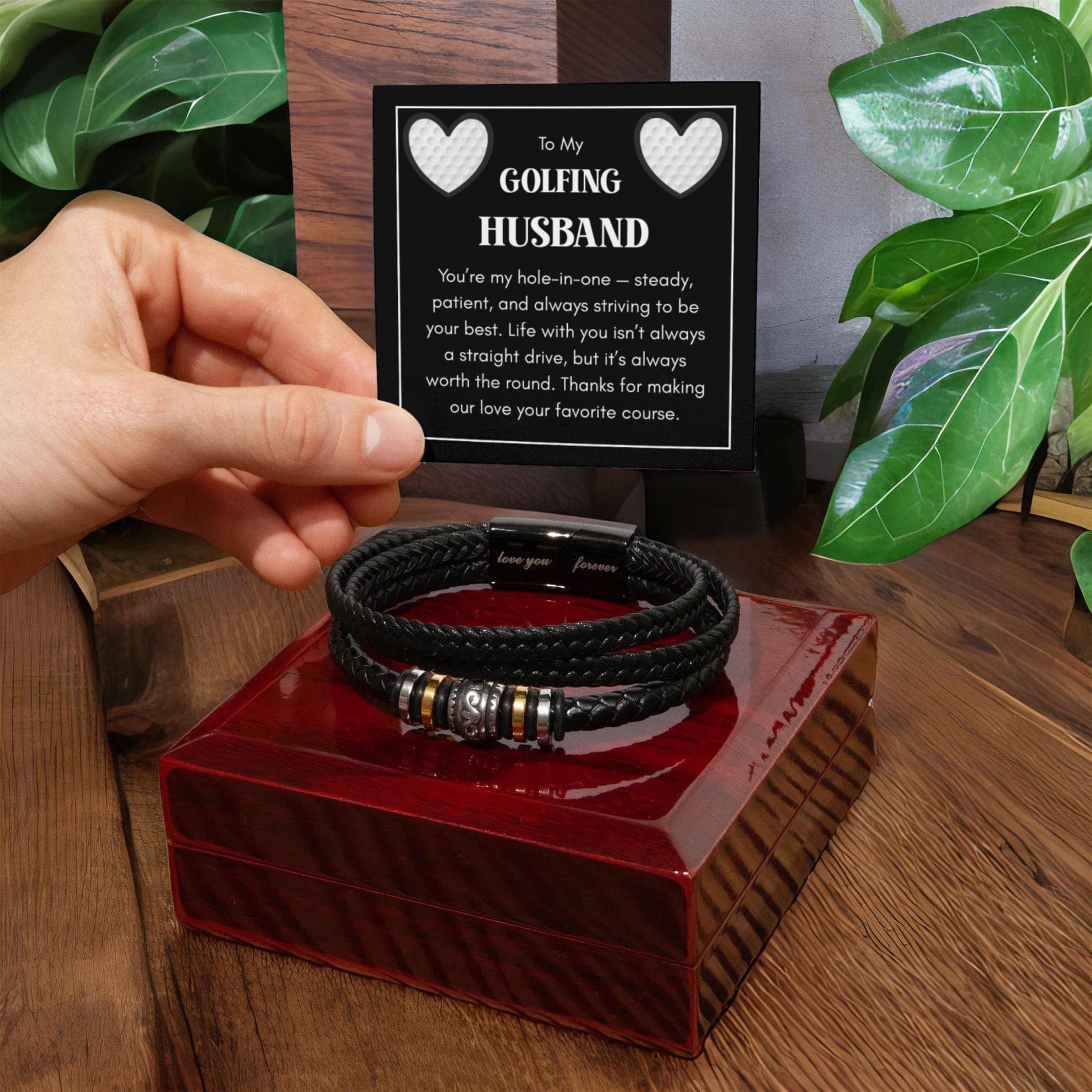 Celebrate your favorite golf lover with this heartfelt bracelet — a perfect gift for the man who makes life feel like your best round yet. The message card says it all: “You’re my hole-in-one — steady, patient, and always striving to be your best. Life with you isn’t always a straight drive, but it’s always worth the round.”