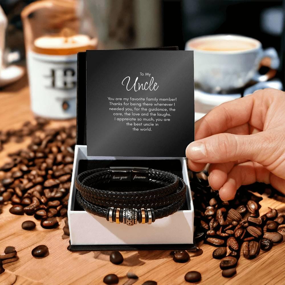 This handsome bracelet is a versatile and meaningful gift, perfect for your beloved uncle on any special occasion. Whether it's for his birthday, Christmas, or just a thoughtful gesture to show your appreciation, this enduring piece symbolizes your constant love and unwavering support. It's a lasting reminder of the bond you share and the special place he holds in your life.